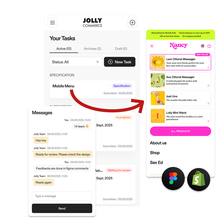 - Significant work on navigation, collection pages and cart to redirect customers to the right product